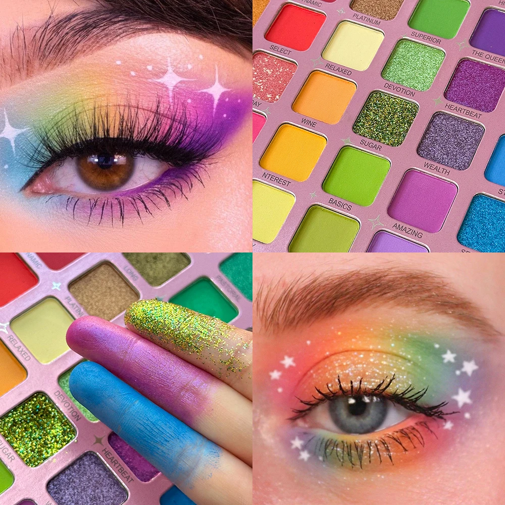 Diverse Matte & Shimmer Range: Features a balanced mix of essential matte transition shades and dazzling metallic/pearl shimmers for dimension.